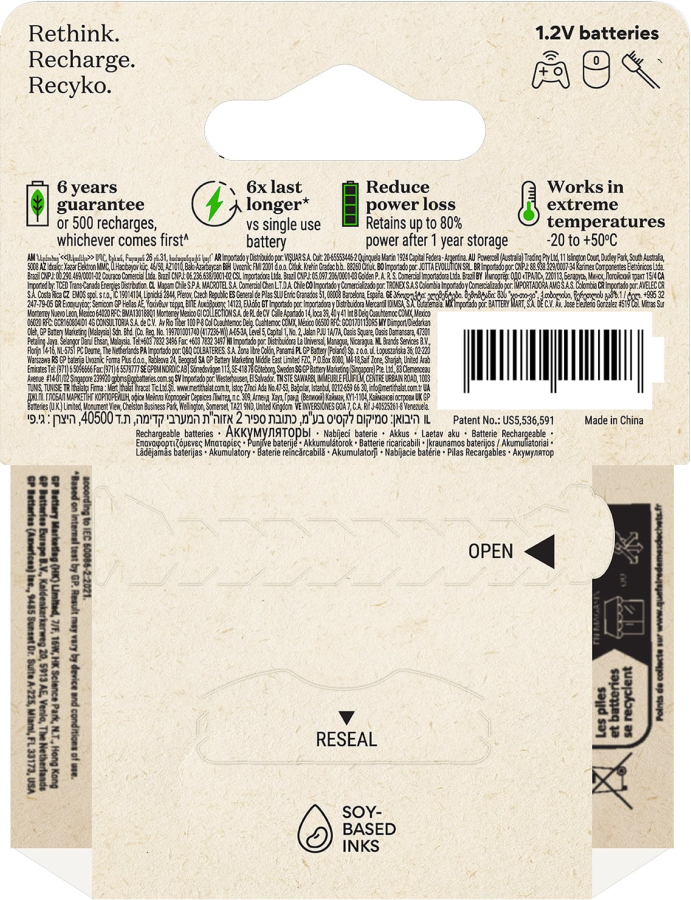 Le batterie GP ReCyko sono perfettamente indicate per apparecchi che richiedono molta energia e possono essere ricaricate centinaia di volte. Sono l’alternativa economica e amica dell ambiente rispetto alle batterie alcaline.