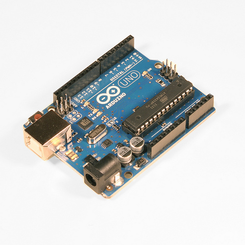 Arduino Uno Rev3 è una scheda elettronica basata sul microcontrollore Atmega328 (datasheet). Dispone di 14 ingressi/uscite digitali (di cui 6 possono essere utilizzate come uscite PWM), 6 ingressi analogici, un cristallo oscillatore a 16 MHz, una connessione USB, un jack di alimentazione, un header ICSP e un pulsante di reset.