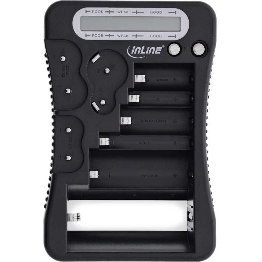 InLine® Tester Universale per batterie standard, bottone, 9V, con display LCD