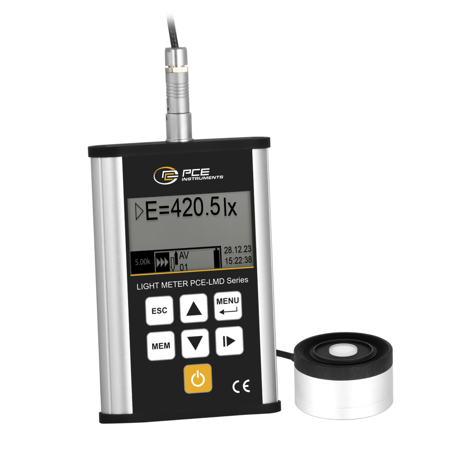 Il luxmetro è dotato di un sensore esterno e di un portasonda, che consente di effettuare misurazioni in punti difficili da raggiungere e garantisce un pratico utilizzo in diverse applicazioni. Un'altra caratteristica del luxmetro è la memoria incorporata. Con questa funzione è possibile salvare facilmente i risultati delle misurazioni e registrarli automaticamente. Questo è particolarmente utile quando è necessario effettuare un'ulteriore analisi dei valori di misura. Il luxmetro crea un documento di testo in cui vengono memorizzati i dati.
