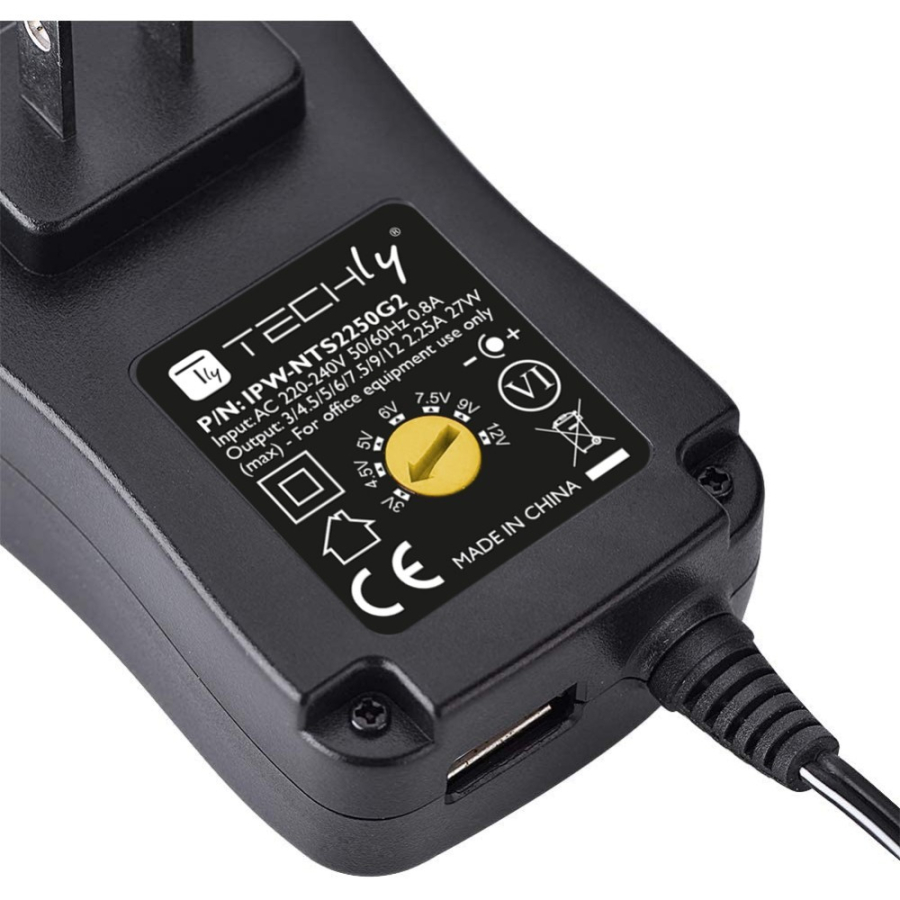 Techly IPW-NTS2250G2 Alimentatore Universale 230V 27W/2.25A 3-12V con 6 Connettori DC e USB