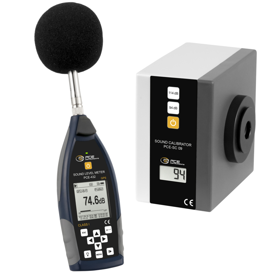 Il fonometro PCE-432 di 1ª classe rispetta i requisiti necessari per la misura del rumore e l'analisi della frequenza. Oltre a misurare il livello sonoro, il fonometro è dotato di un ricevitore GPS. La funzione GPS consente all'operatore di assegnare i rilevamenti a una determinata posizione. Il calibratore acustico è una sorgente sonora alimentato a batterie. Questo calibratore acustico calibra rapidamente e direttamente un fonometro e altri sistemi. Gli adattatori per calibratore acustico consentono di collegare e controllare microfoni da 1", ½" e ¼ ".