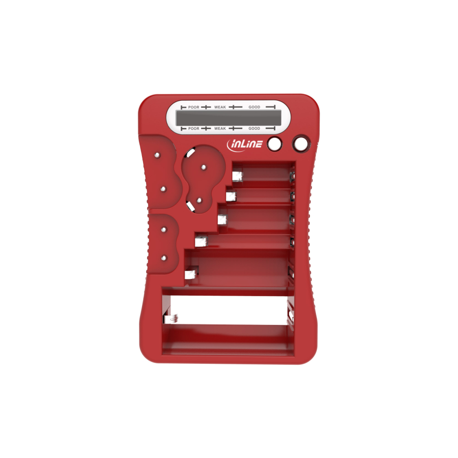 InLine Tester per batterie , display LCD, universale per AA, AAA, 9V, rosso