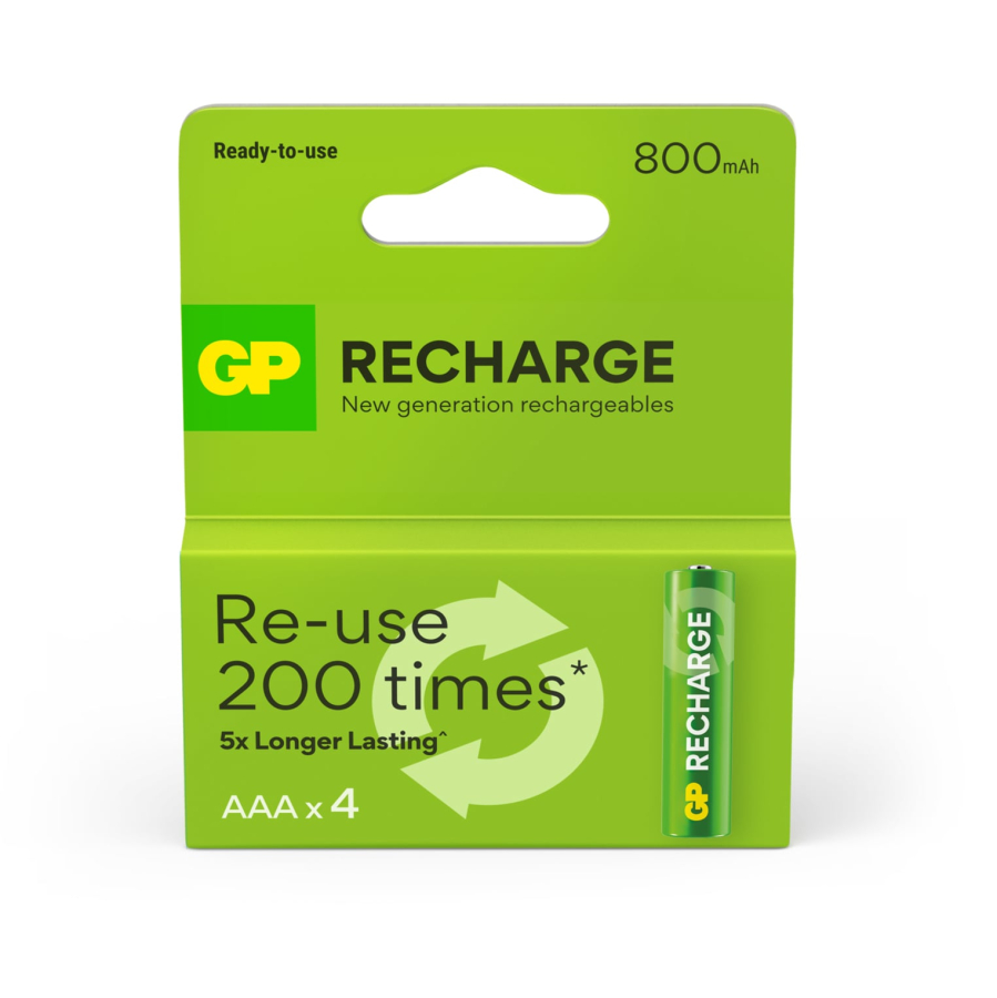 GP Recharge è la gamma di batterie progettata per sfidare anche i più ostinati utilizzatori di batterie usa e getta. Scegliere una batteria ricaricabile non solo fa risparmiare denaro. ma riduce anche l impatto ambientale: perché comprare 200 batterie quando ne basta una?