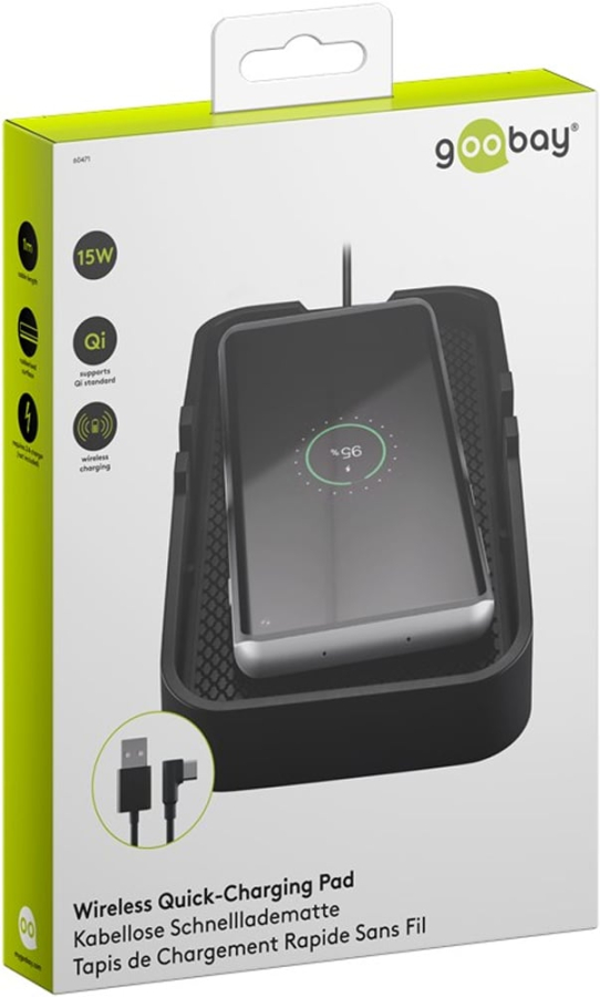 Caricatore Smartphone Qi Wireless da Auto 15W Silicone Nero