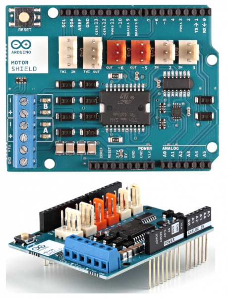 Arduino Motor Shield si basa sull'L298 ( scheda tecnica ), che è un doppio driver a ponte intero progettato per pilotare carichi induttivi come relè, solenoidi, motori CC e motori passo-passo. Ti consente di pilotare due motori DC con la tua scheda Arduino, controllando la velocità e la direzione di ciascuno in modo indipendente. Puoi anche misurare l'assorbimento di corrente del motore di ciascun motore, tra le altre caratteristiche. Lo scudo è compatibile con TinkerKit, il che significa che puoi creare rapidamente progetti collegando i moduli TinkerKit alla scheda.