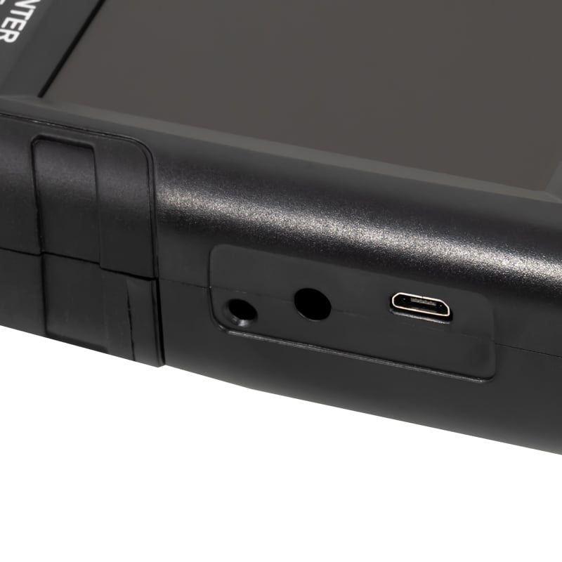 Durante la misurazione con il contatore di particelle è possibile registrare i valori di misura. Il contatore di particelle dispone di una memoria per 12 serie di misurazioni. Ciascuna serie integra 999 punti di misurazione. È possibile impostare la frequenza di campionamento. Una volta conclusa la registrazione sarà possibile trasferire i dati del contatore di particelle al computer. Il contatore di particelle integra una interfaccia micro USB che consente di collegare il dispositivo a qualsiasi PC. Dal momento che il computer riconosce il contatore di particelle come memoria esterna, potrà collegarlo a qualsiasi sistema operativo. I dati archiviati vengono salvati in formato pdf.