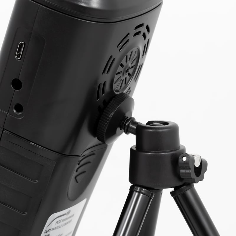 Contatore di particelle per misure orientative / Impostazione dei valori limite / Registrazione dei dati / Interfaccia micro USB / Range: 0 ... 1.000 µg/m³ / concentrazione della massa / Autonomia della batteria di circa 9 ore / Display LCD a colore da 3,2" / Valigetta per trasporto / Vite da 1/4" per il montaggio su treppiede